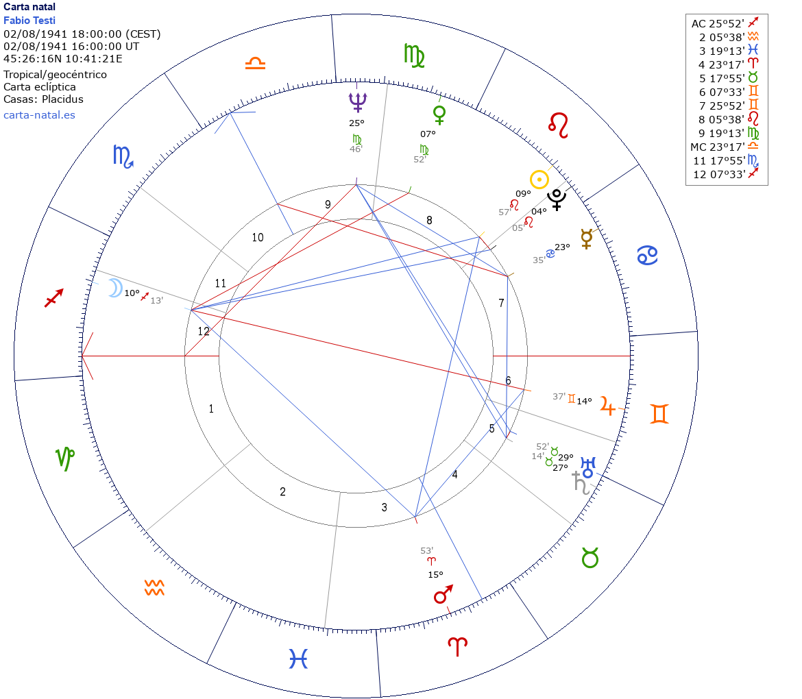 Esta es la carta natal de Fabio Testi, actor italiano.