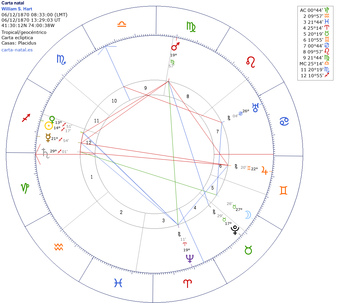 Esta es la carta natal de William S. Hart, actor estadounidense.