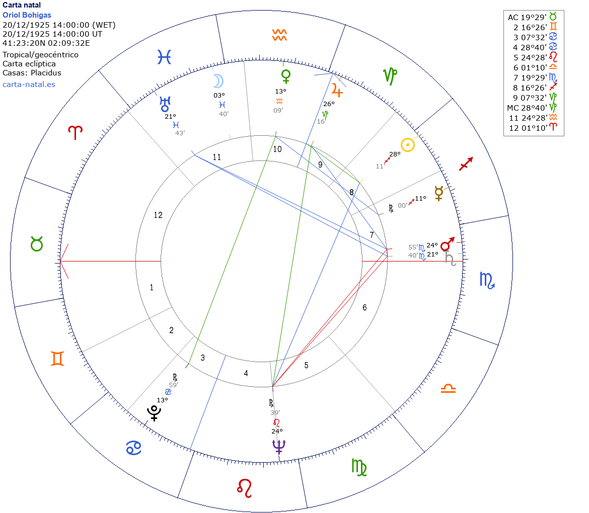 Esta es la carta natal de Oriol Bohigas, arquitecto español.