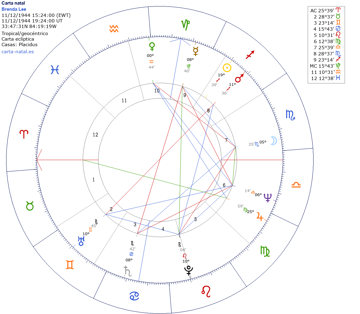 Esta es la carta natal de Brenda Lee, cantante estadounidense