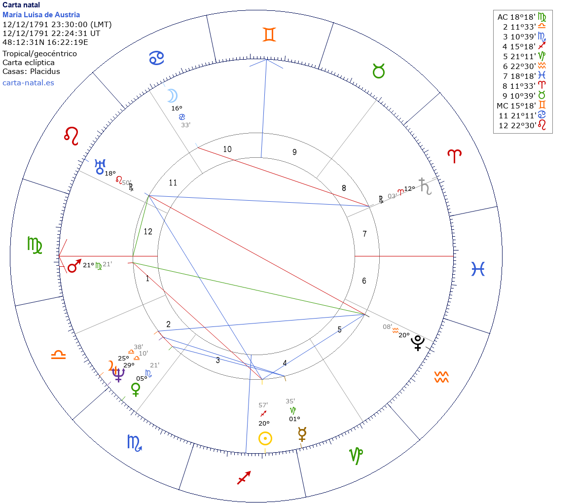 María Luisa de Austria nació el 12 de Diciembre de 1791 a las 23:30:00 en Vienna (Vienna), Austria