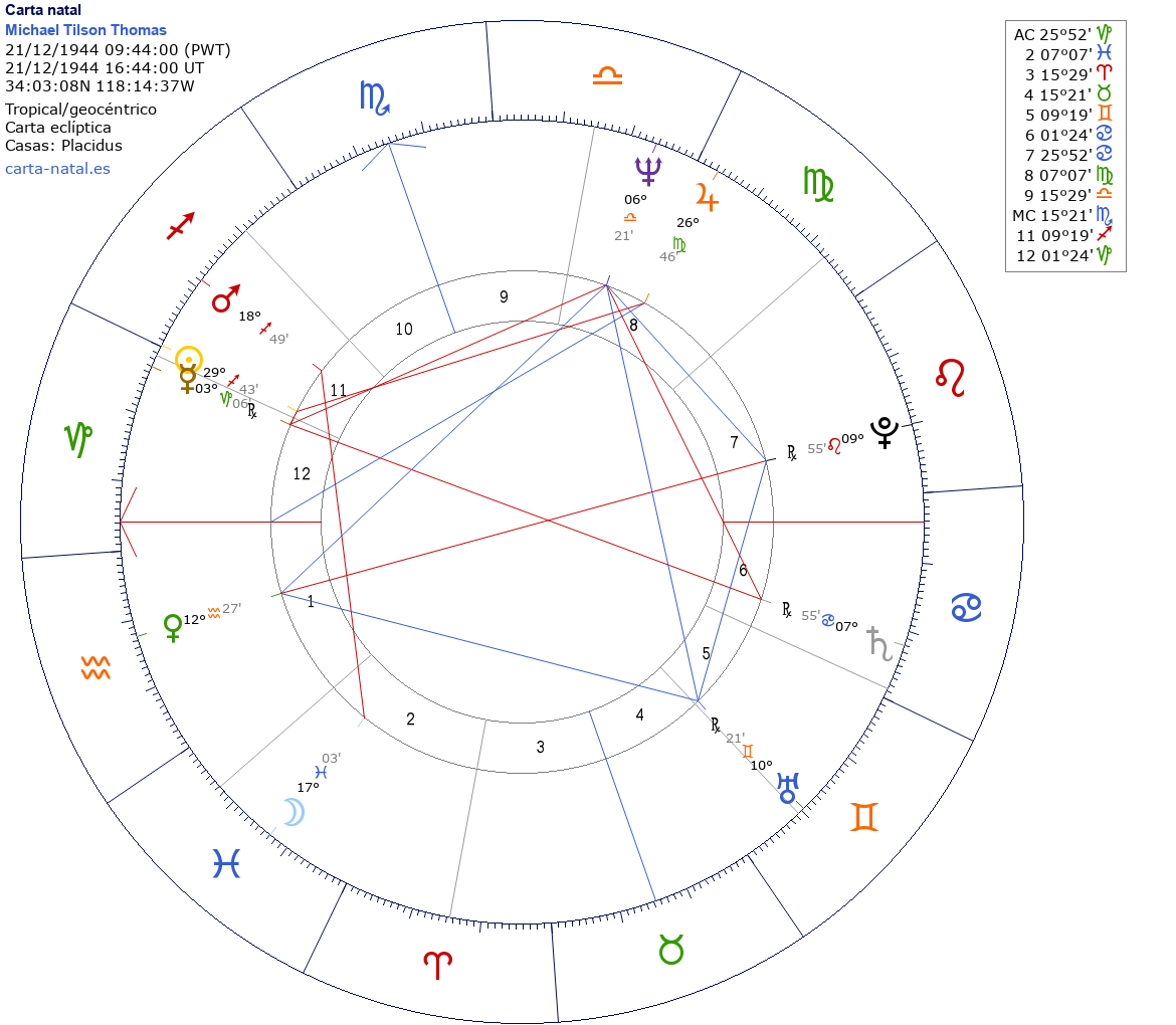Esta es la carta natal de Michael Tilson Thomas, director de orquesta estadounidense.