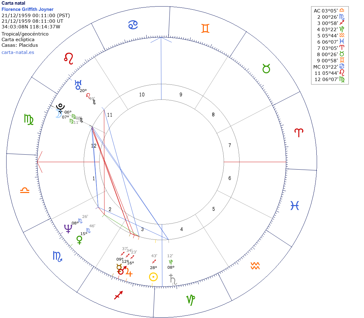 Esta es la carta natal de Florence Griffith Joyner, atleta estadounidense.
