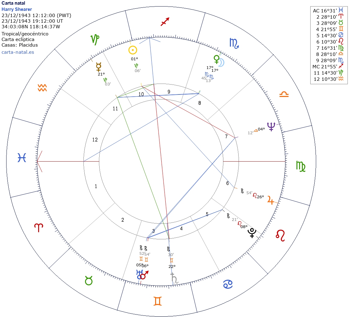 Esta es la carta natal de Harry Shearer, actor estadounidense.