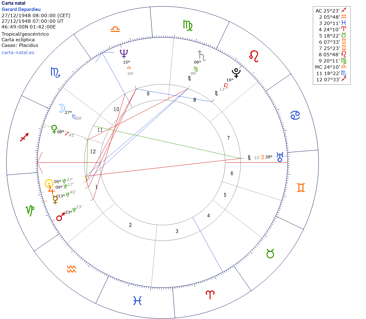 Esta es la carta natal de Gerard Depardieu, actor francés.