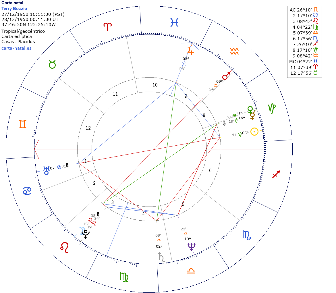 Esta es la carta natal de Terry Bozzio, baterista estadounidense de Missing Persons.