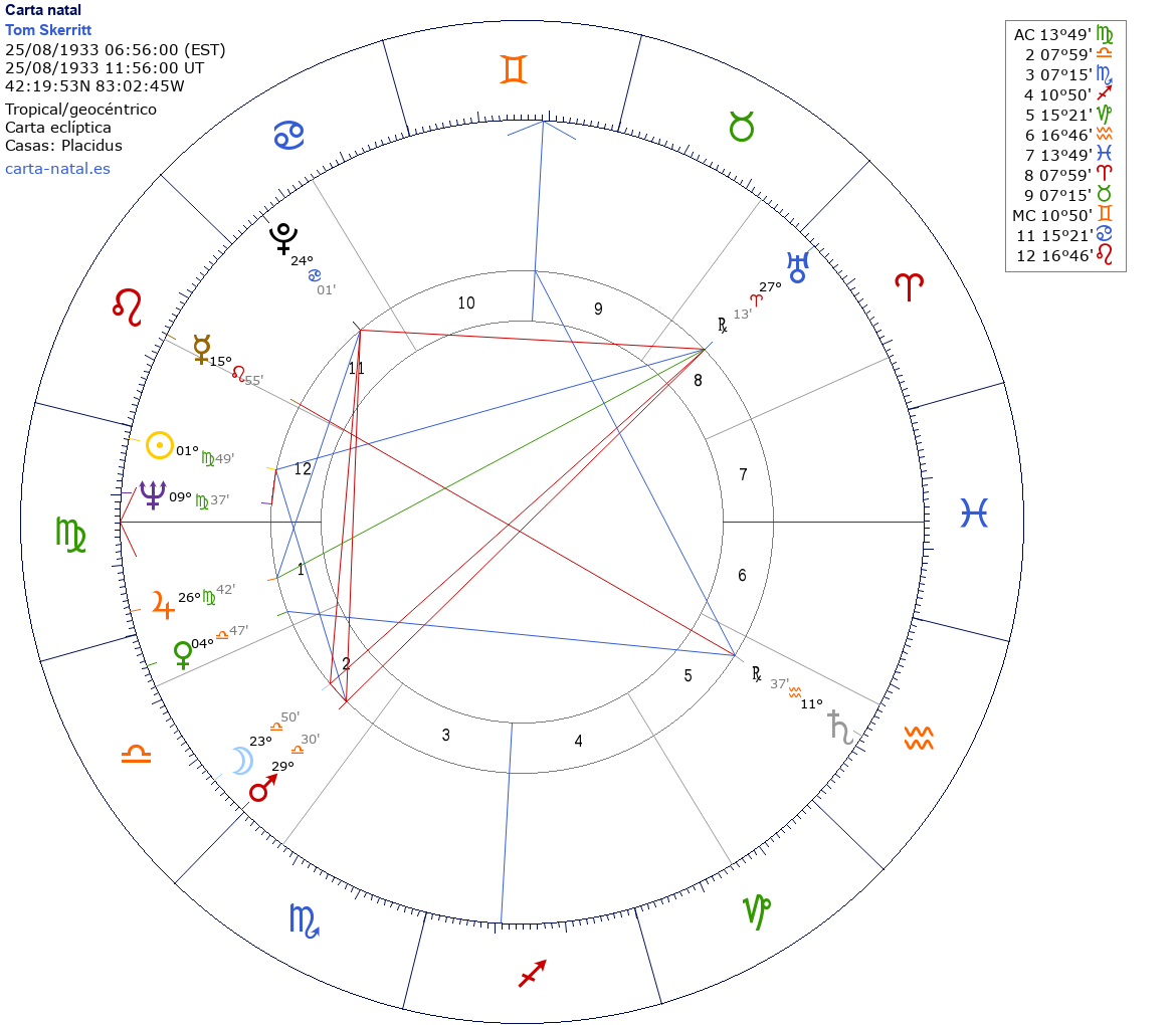 Esta es la carta natal de Tom Skerritt, actor estadounidense.
