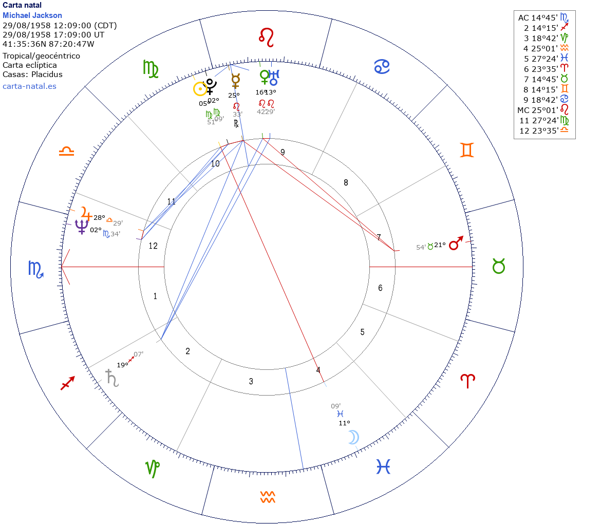 Esta es la carta natal de Michael Jackson, cantante estadounidense.