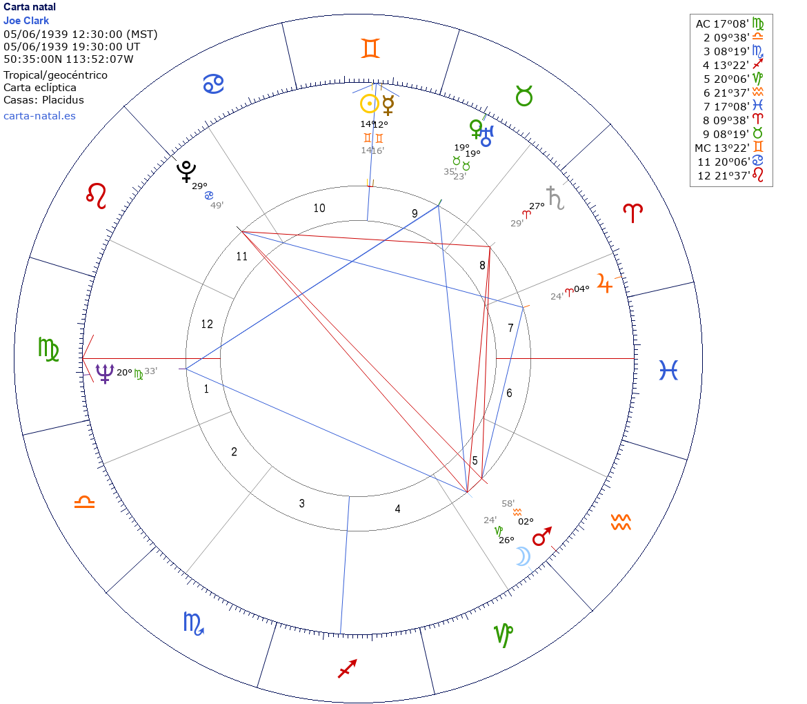 Esta es la carta natal de Joe Clark, político, primer ministro de Canadá.