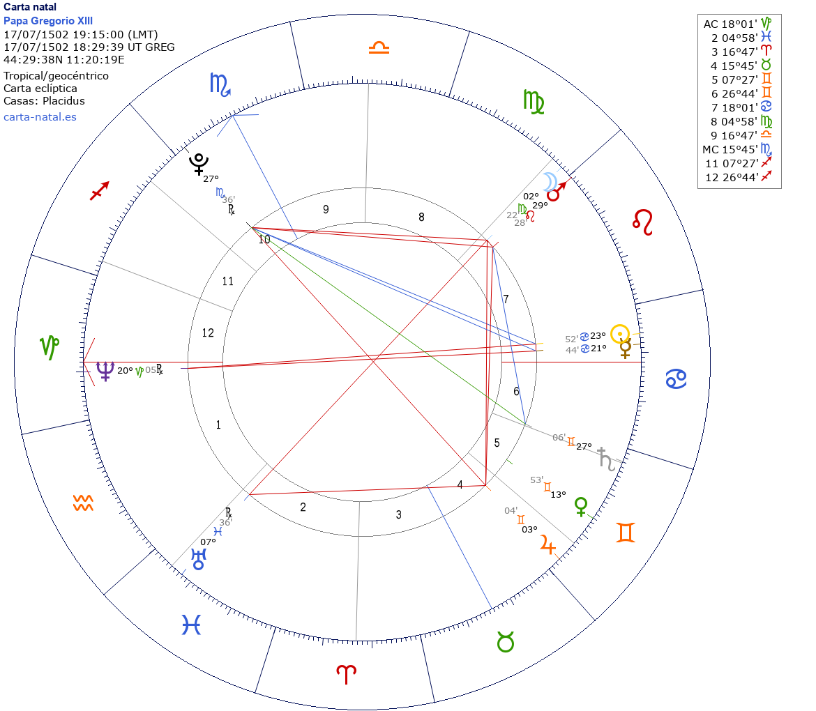 Papa Gregorio XIII nació el 07 de Julio de 1502 a las 19:15:00 en Bologna (Bologna), Italia