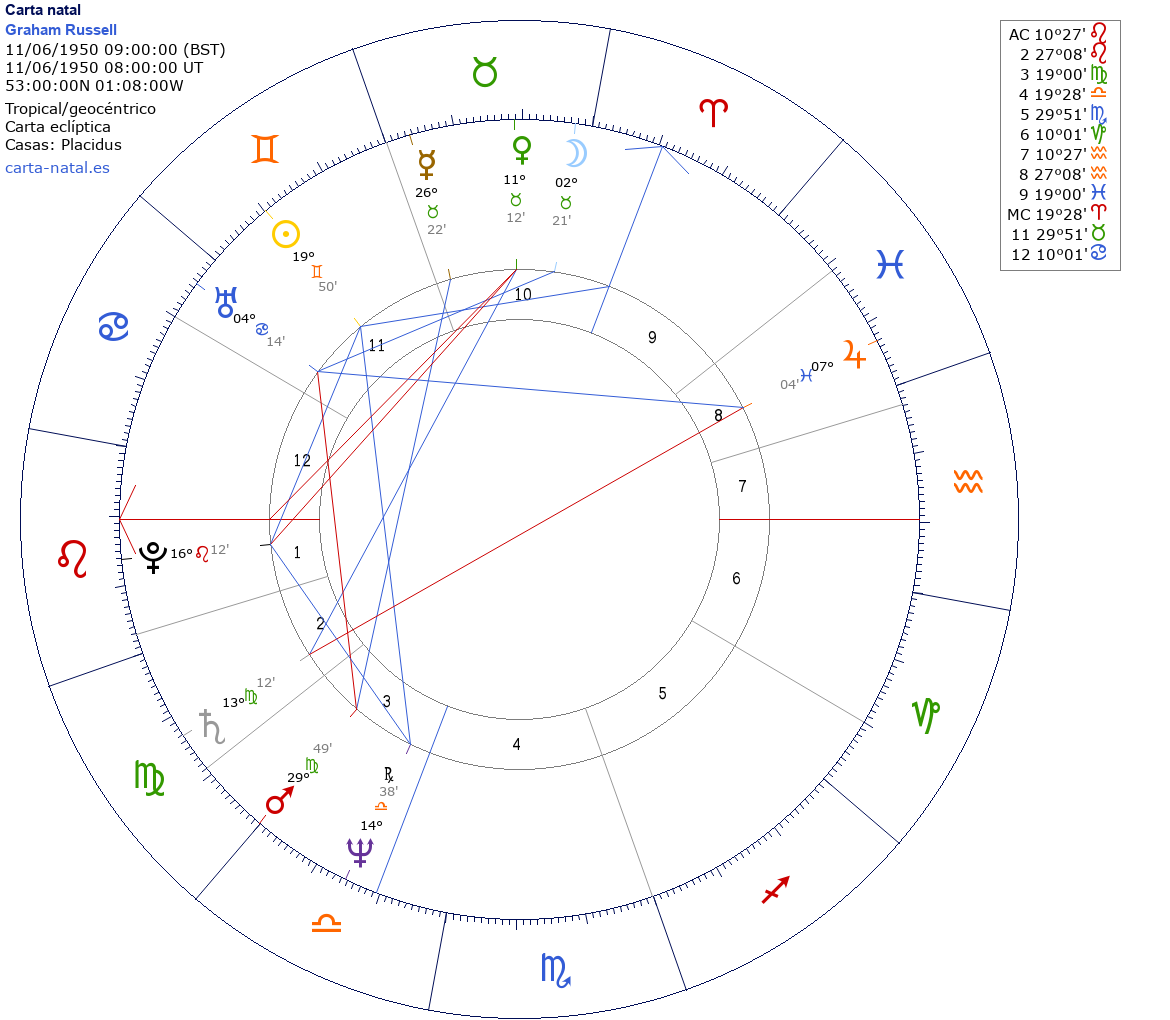 Esta es la carta natal de Graham Russell, guitarrista y vocalista del grupo (Air Supply).
