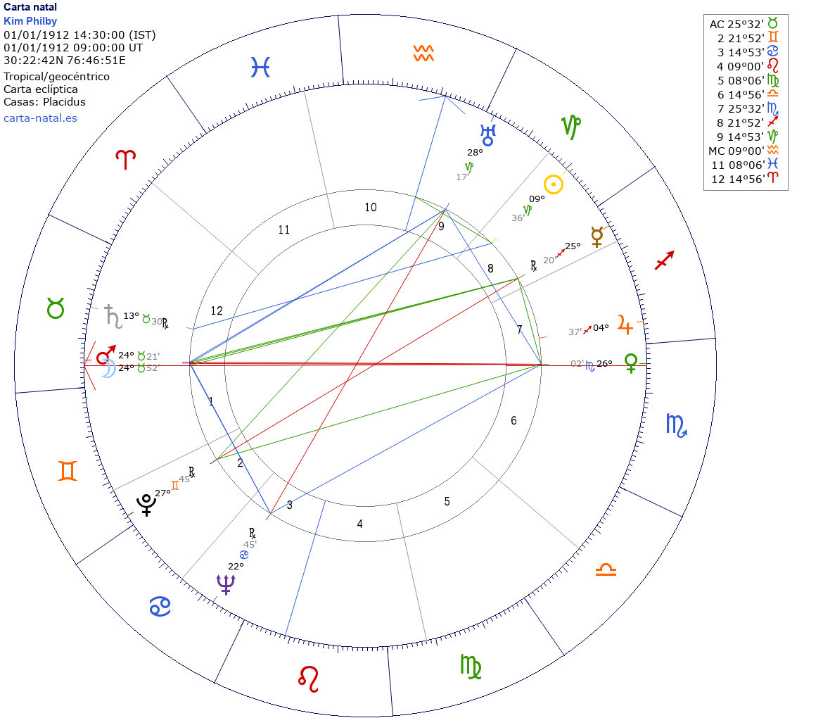 Kim Philby nació el 1 de Enero de 1912 a las 14:30:00 en Ambala (Haryana), India