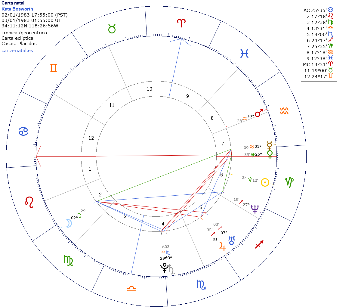 Esta es la carta natal de Kate Bosworth, actriz estadounidense.