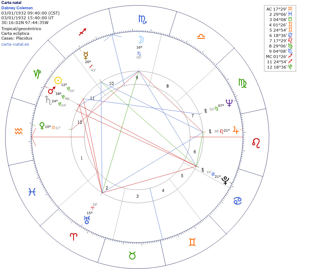 Esta es la carta natal de Dabney Coleman, actor estadounidense.