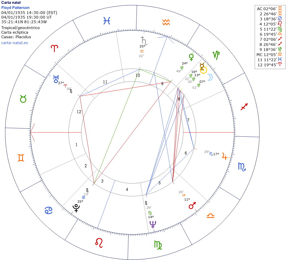 Esta es la carta natal de Floyd Patterson, boxeador estadounidense.