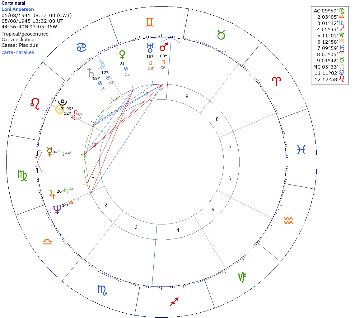 Esta es la carta natal de Loni Anderson, actriz estadounidense.