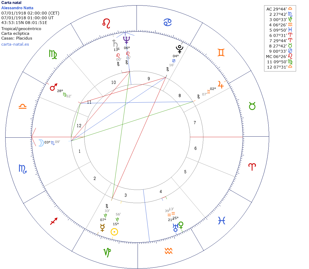 Esta es la carta natal de Alessandro Natta, político italiano (m. 2001).