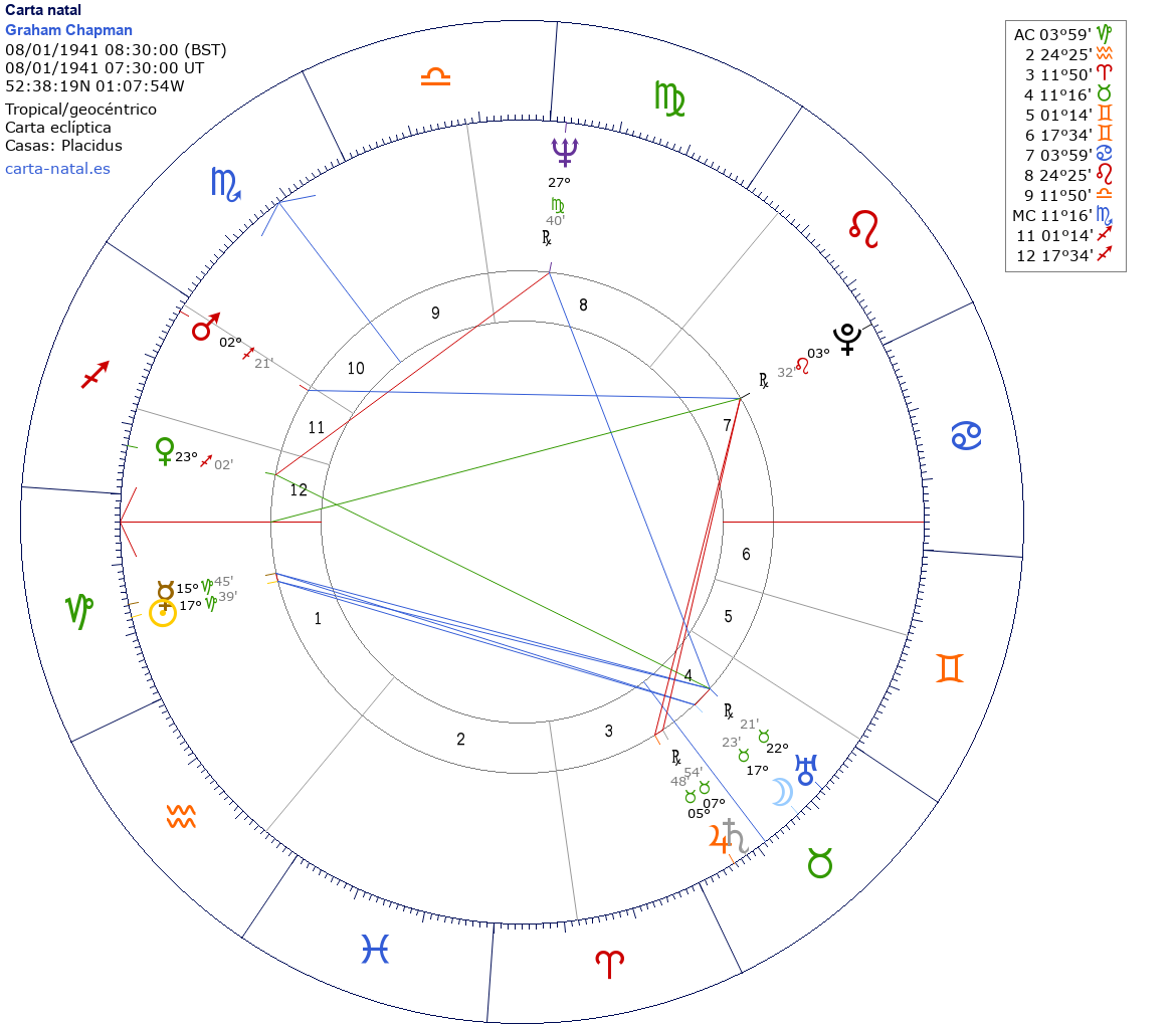 Esta es la carta natal de Graham Chapman, actor y cómico británico. (m. 1989)