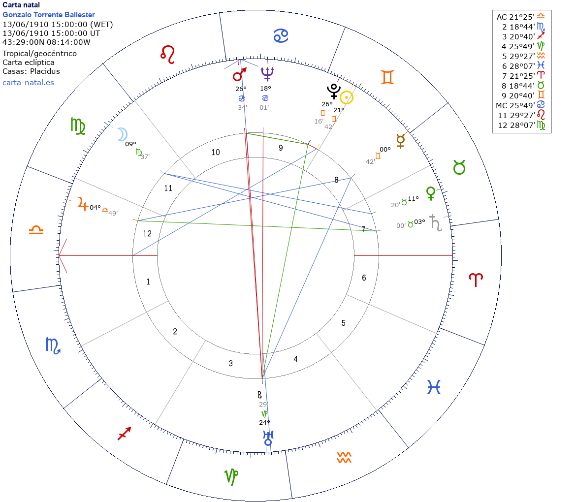 Gonzalo Torrente Ballester nació el 13 de Junio de 1910 a las 15:00:00 en Ferrol (A Coruña), España