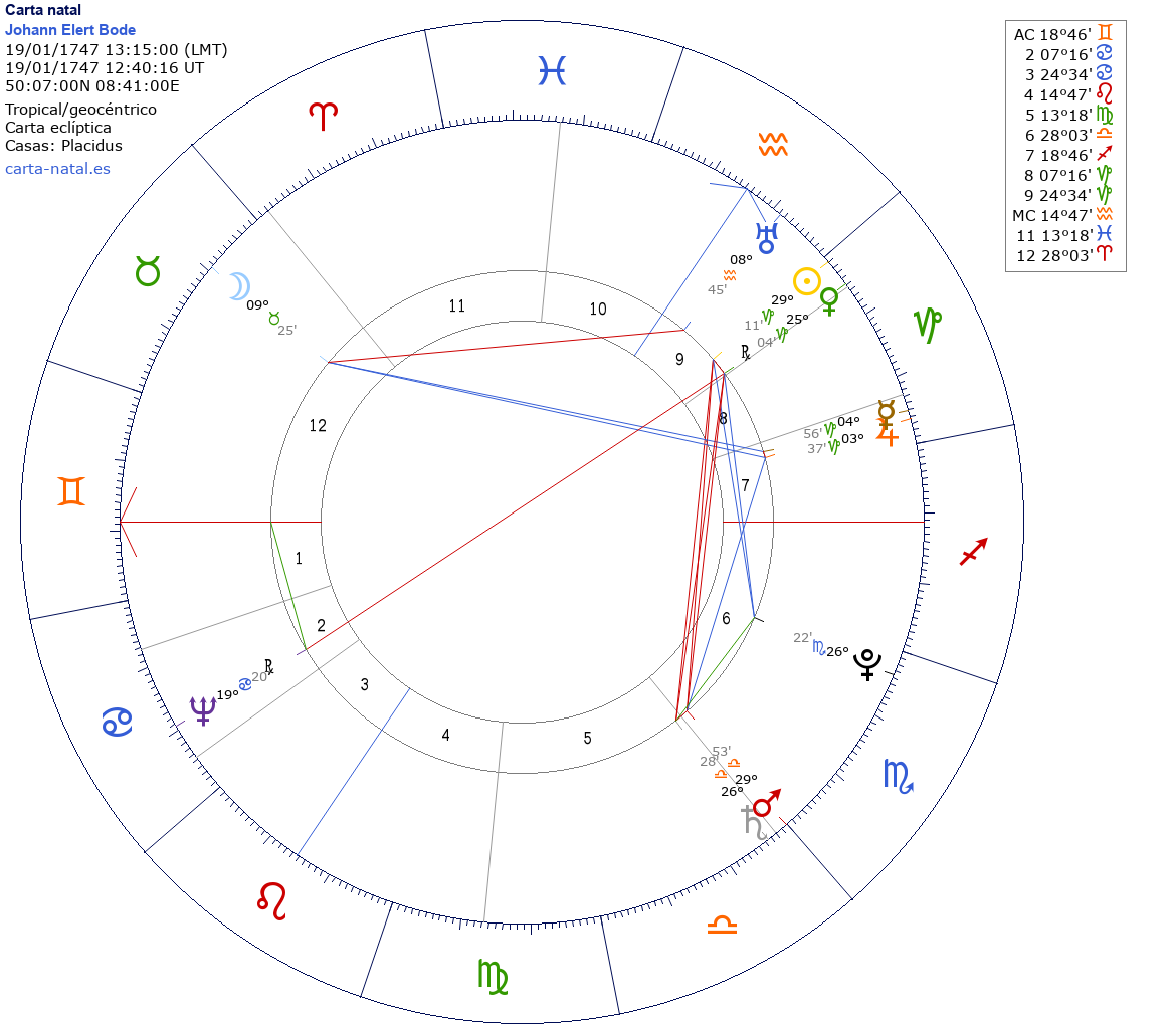 Esta es la carta natal de Johann Elert Bode, astrónomo alemán.