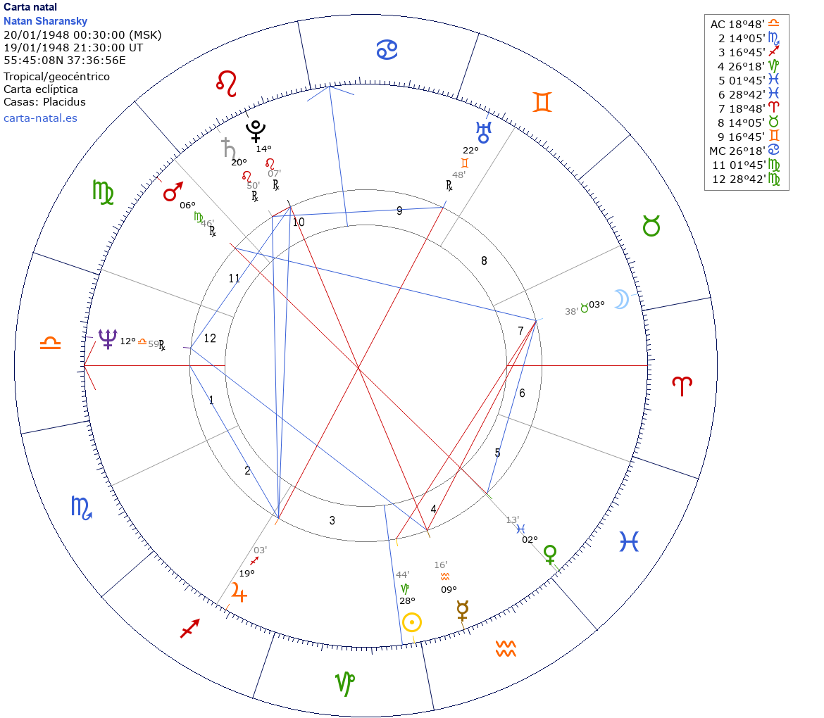 Esta es la carta natal de Natan Sharansky, político israelí de origen ruso.