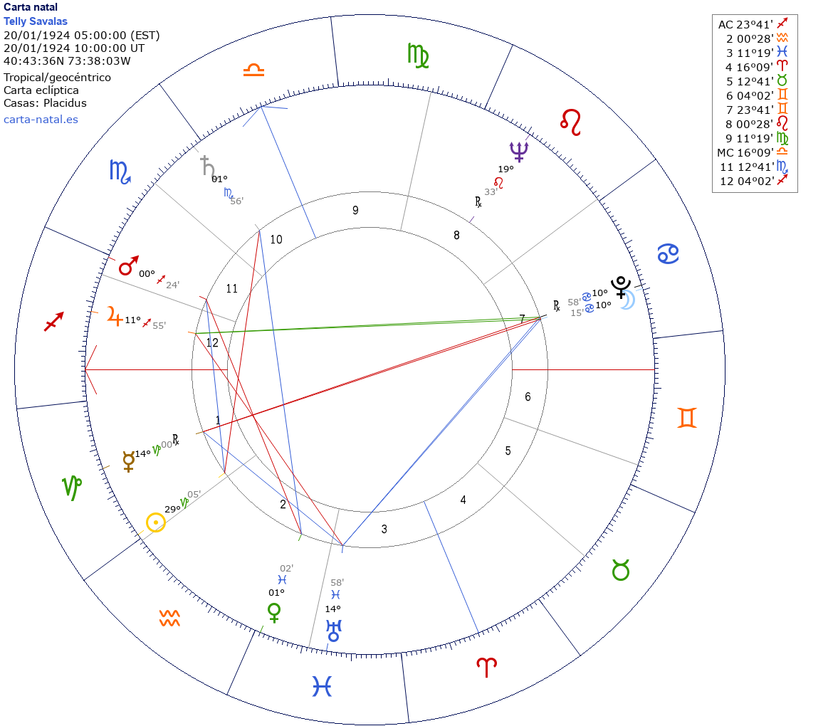 Esta es la carta natal de Telly Savalas, actor estadounidense.