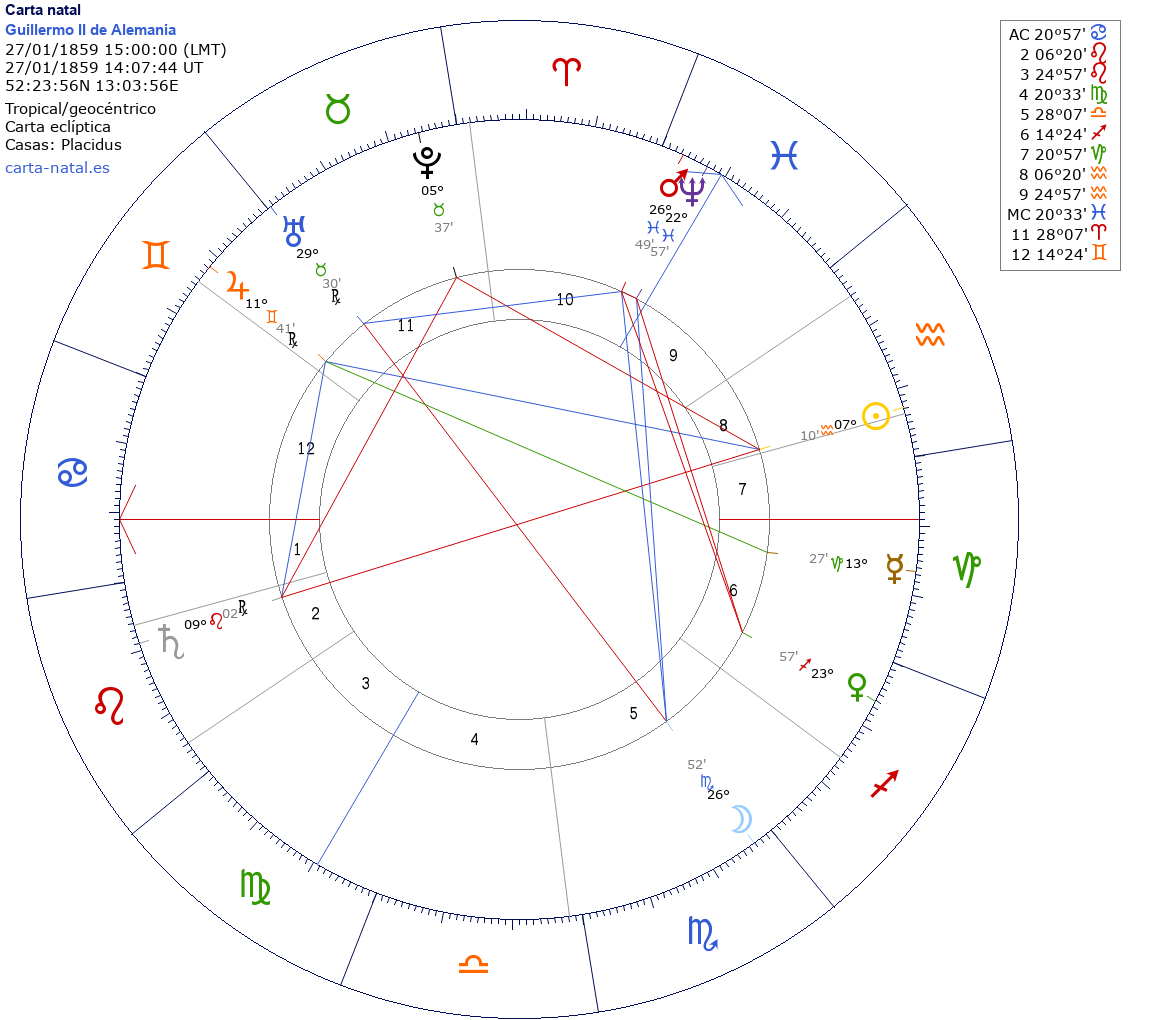 Esta es la carta natal de Guillermo II de Alemania, militar, emperador alemán y rey prusiano (1888-1918).