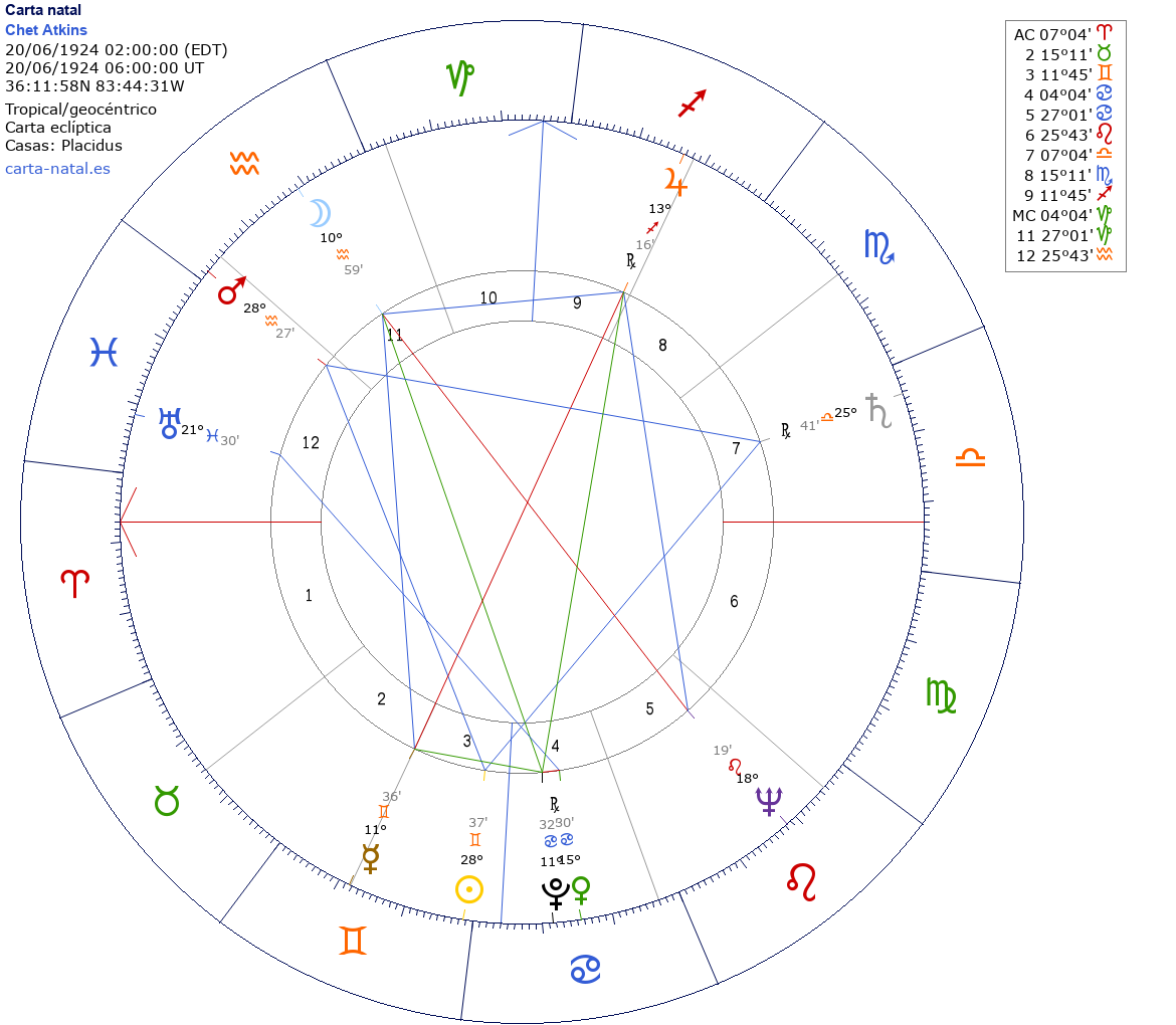 Esta es la carta natal de Chet Atkins, guitarrista y productor estadounidense.
