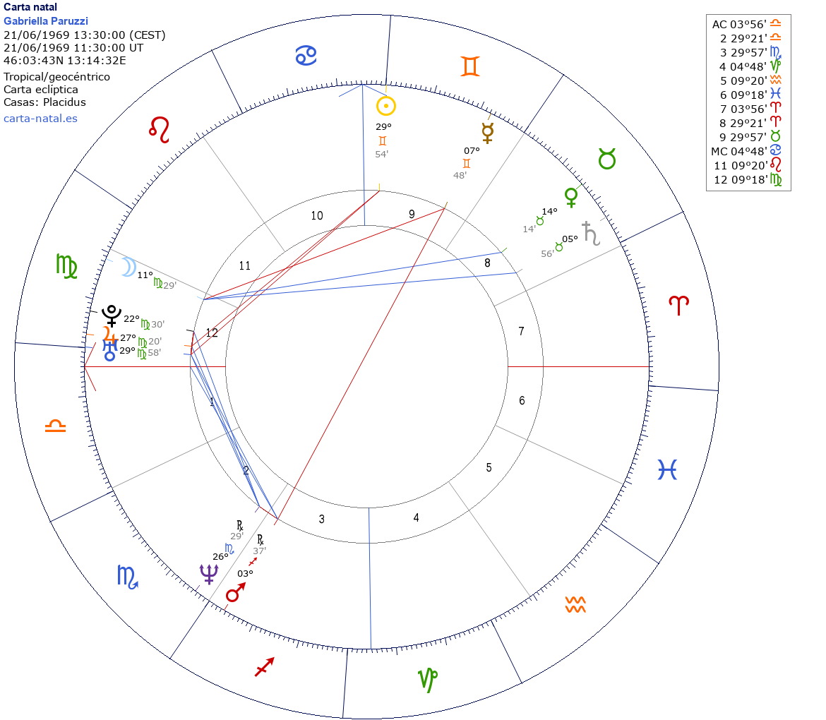Esta es la carta natal de Gabriella Paruzzi, esquiador italiano.