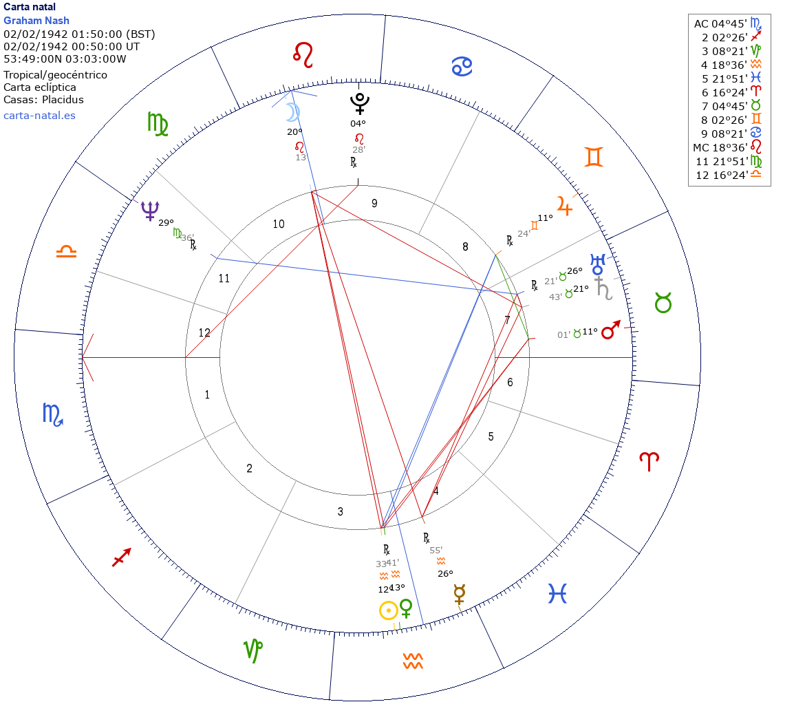 Esta es la carta natal de Graham Nash, músico britanico (The Hollies).