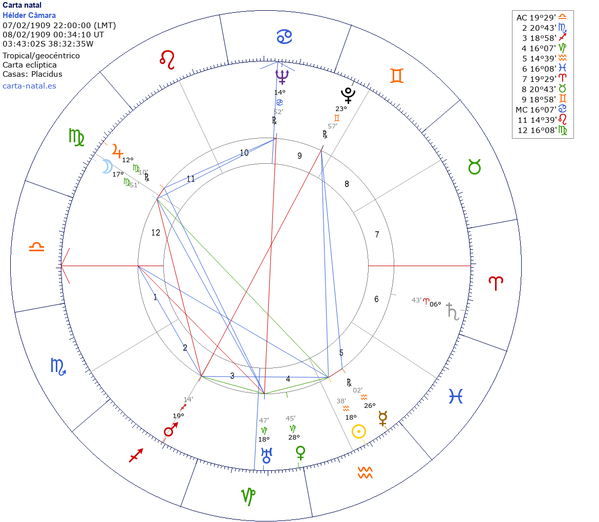 Hélder Câmara nació el 7 de Febrero de 1909 a las 22:00:00 en Fortaleza (Ceará), Brasil