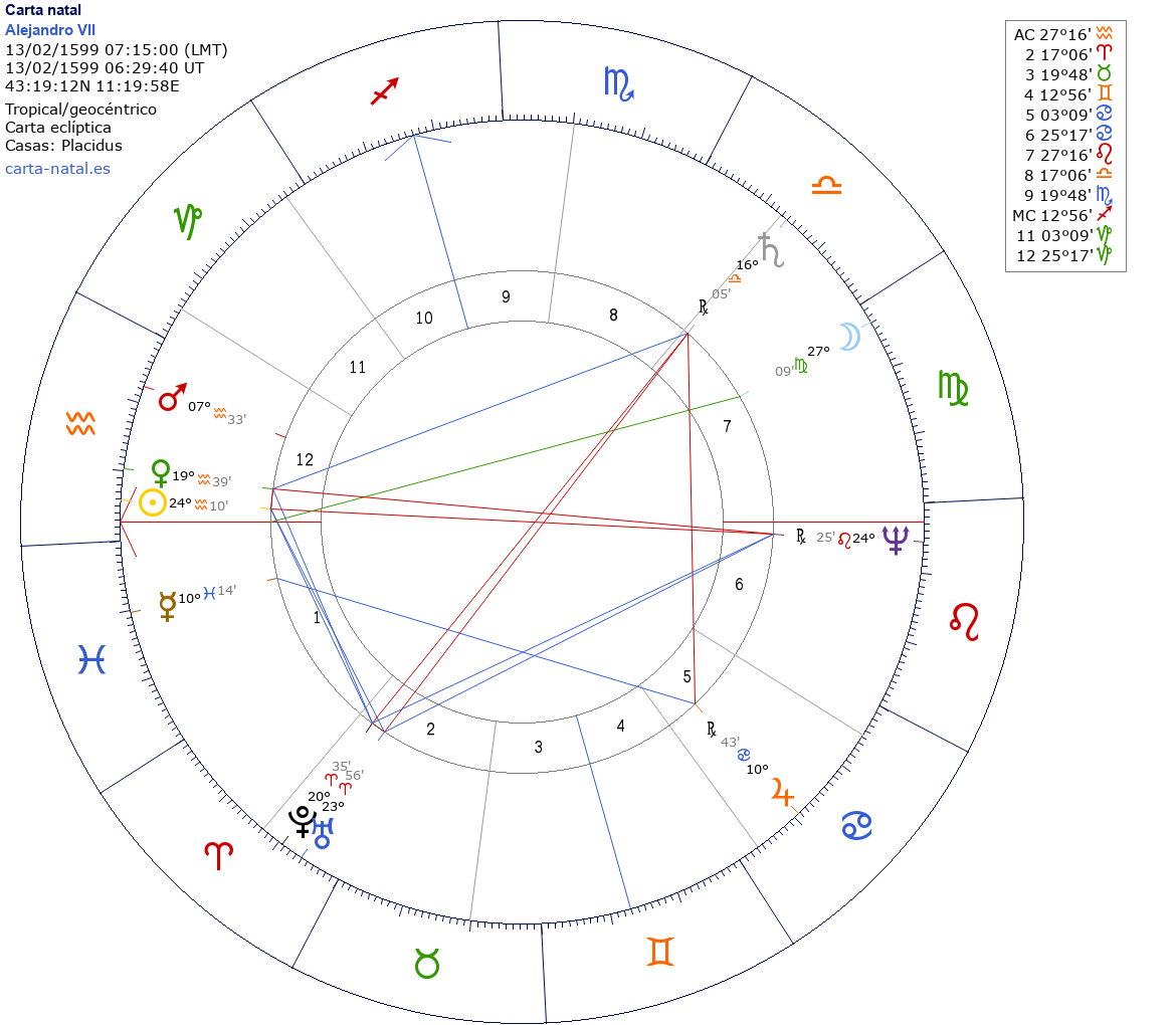 Esta es la carta natal de Alejandro VII, Papa de la Iglesia católica.
