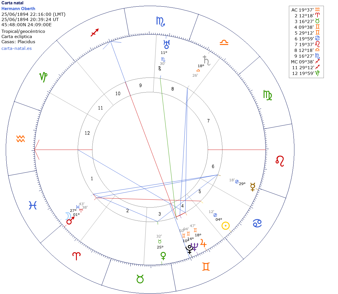 Esta es la carta natal de Hermann Julius Oberth, físico alemán, uno de los padres fundadores de la astronáutica.