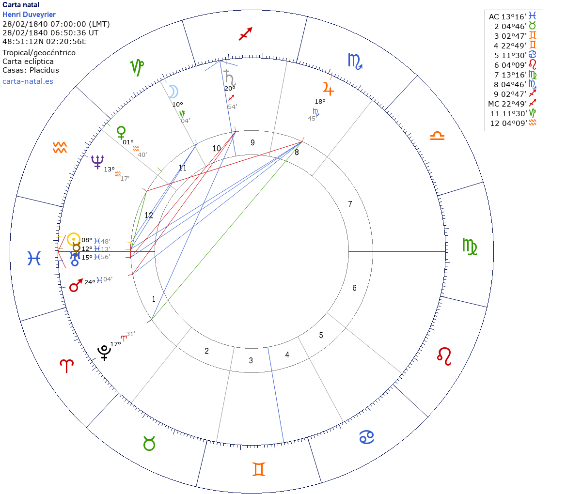 Esta es la carta natal de Henri Duveyrier, geógrafo francés y explorador del Sahara.