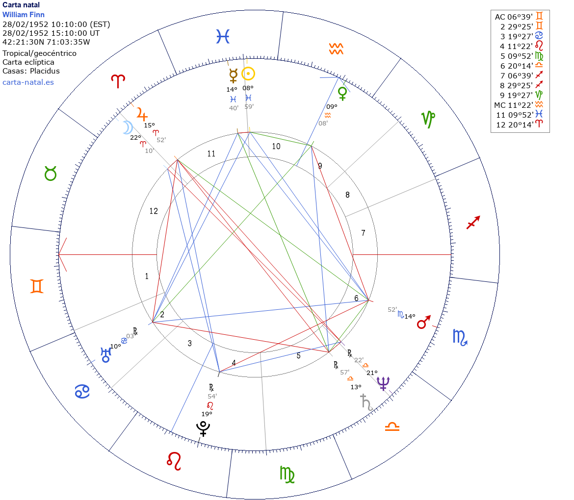 Esta es la carta natal de William Finn, compositor estadounidense.