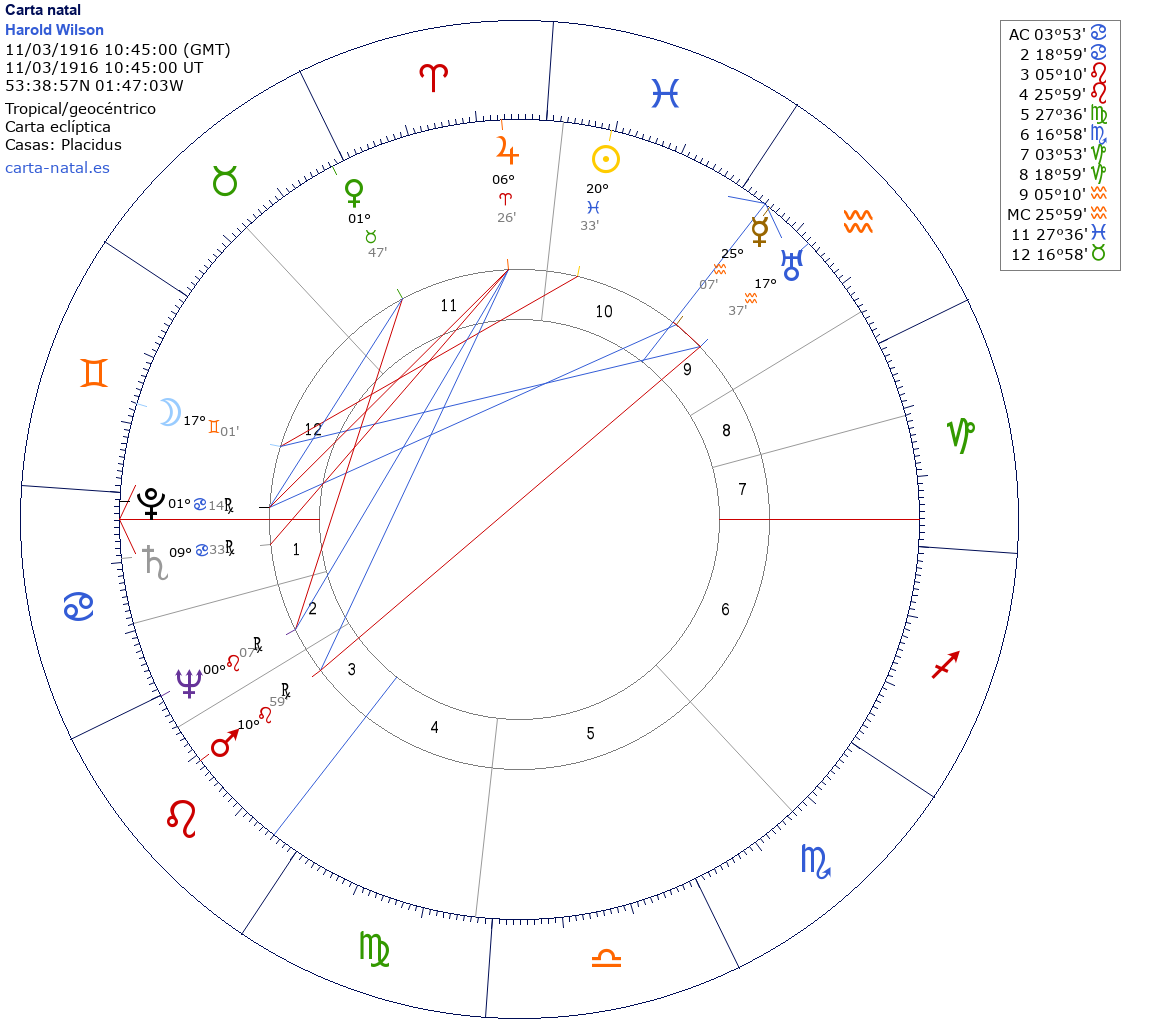 Esta es la carta natal de Harold Wilson, primer ministro del Reino Unido (1964-1970).