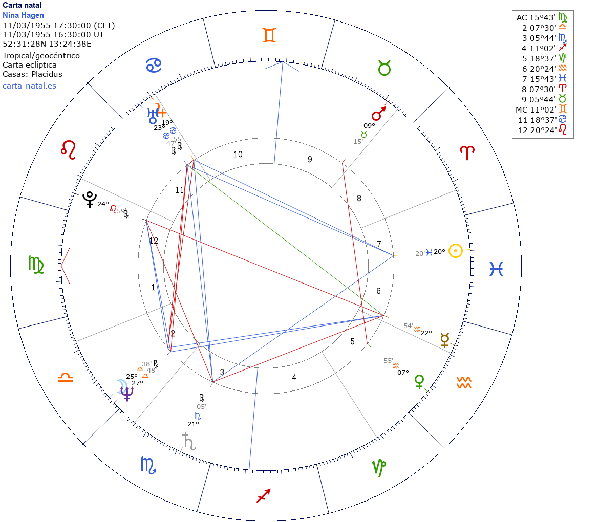 Esta es la carta natal de Nina Hagen, cantante alemana.