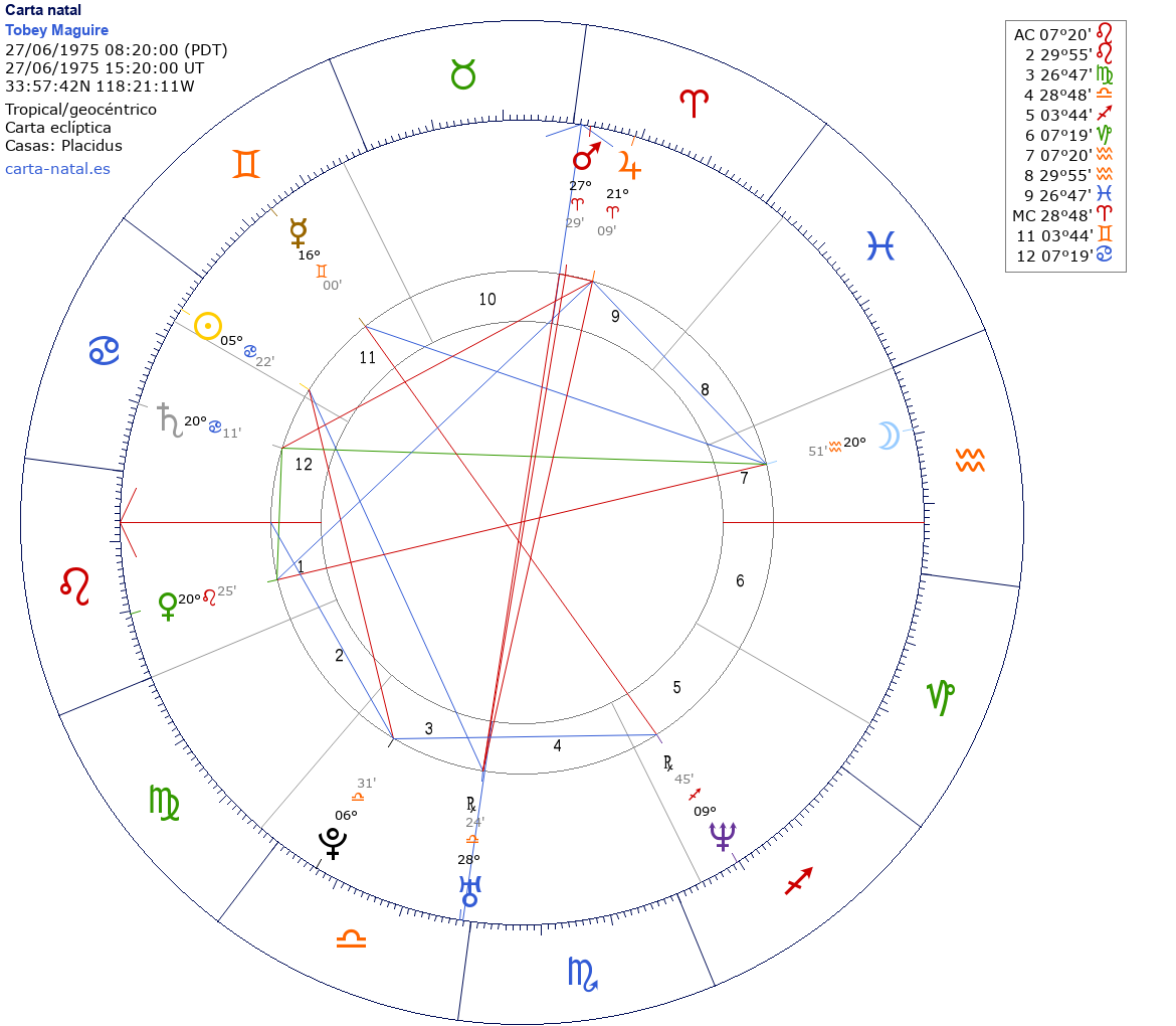 Esta es la carta natal de Tobey Maguire, actor estadounidense