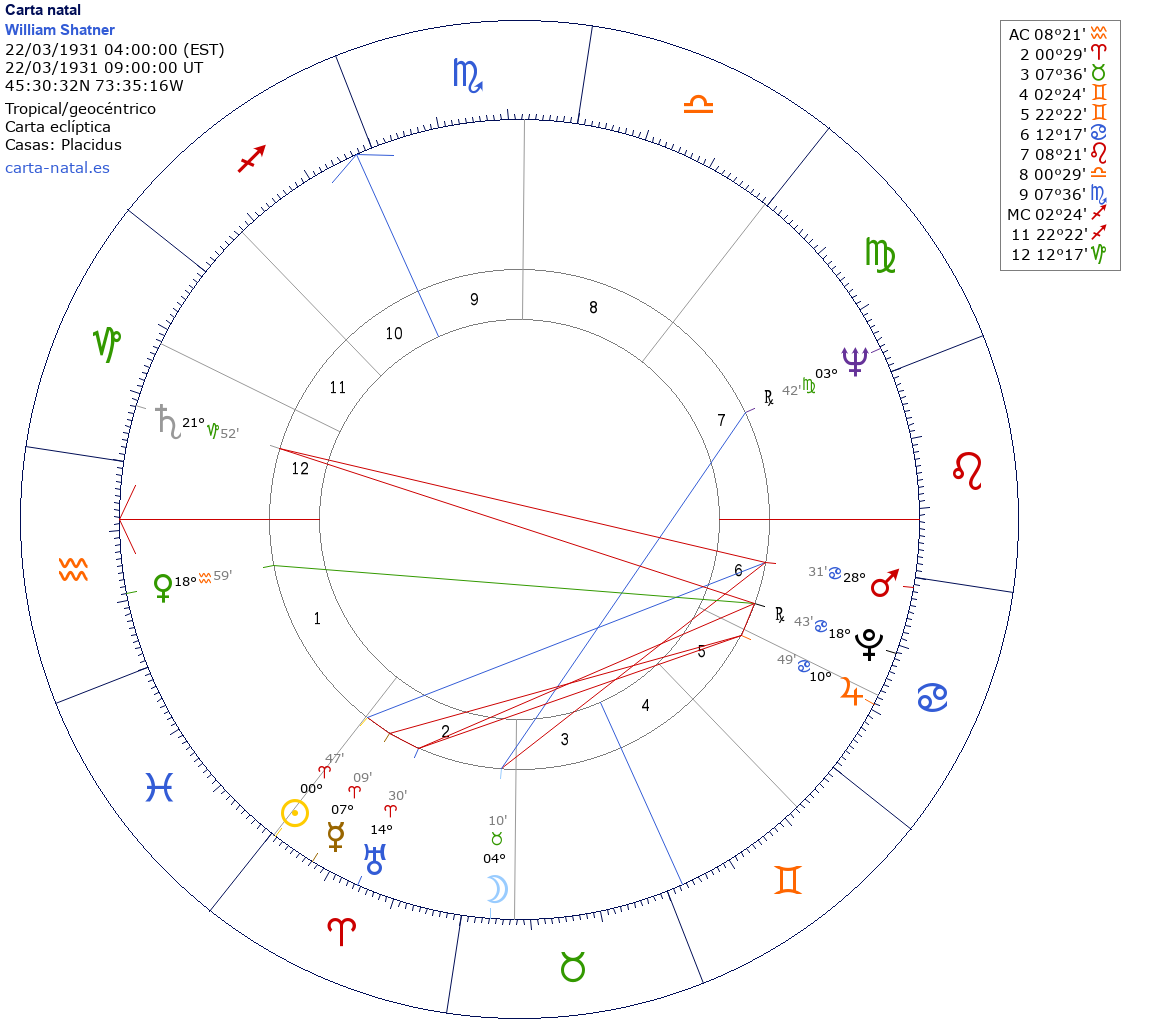 Esta es la carta natal de William Shatner, actor canadiense.