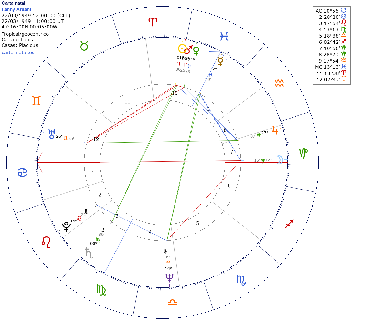 Esta es la carta natal de Fanny Ardant, actriz francesa.