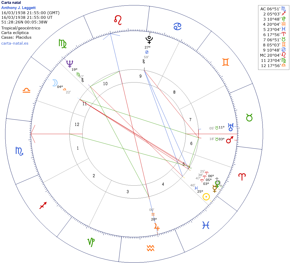 Esta es la carta natal de Sir Anthony James Leggett, físico inglés, Premio Nobel de Física en 2003, Premio Wolf en Física en 2002 y 2003.
