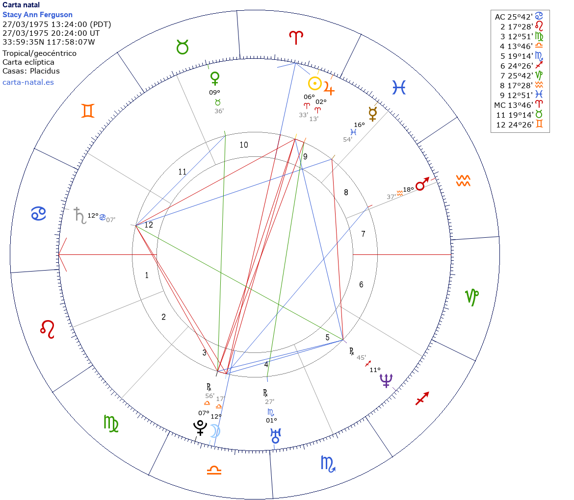 Esta es la carta natal de Fergie, cantante, compositora, productora musical, actriz ocasional y diseñadora de moda estadounidense.