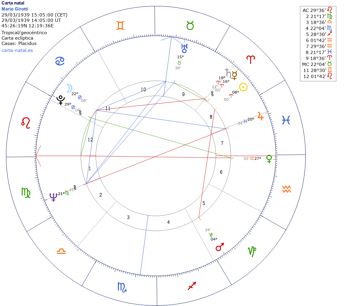 Esta es la carta natal de Mario Girotti (Terence Hill), actor italiano.