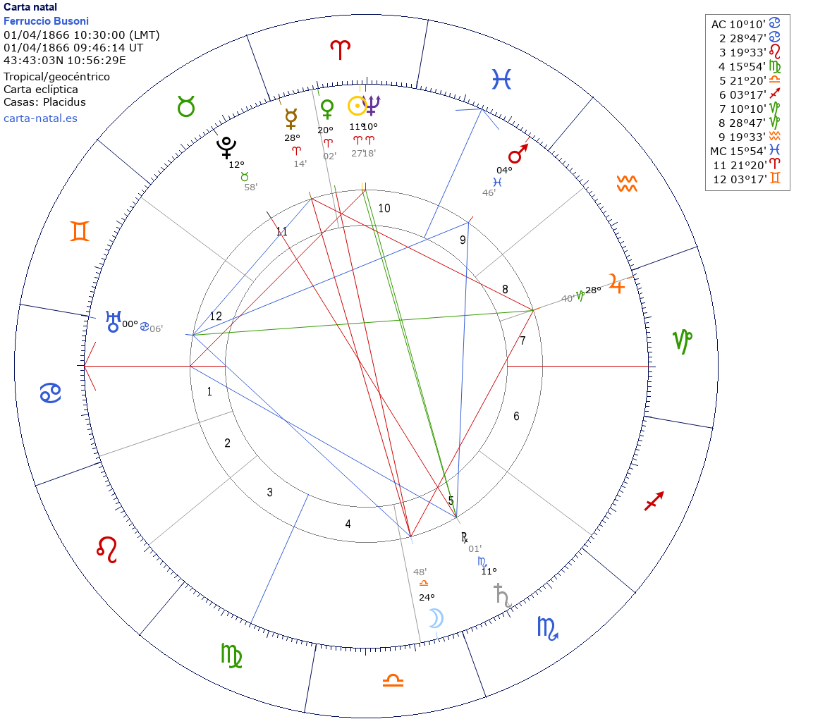 Ferruccio Busoni nació el 1 de Abril de 1866 a las 10:30:00 en Empoli (Firenze), Italia