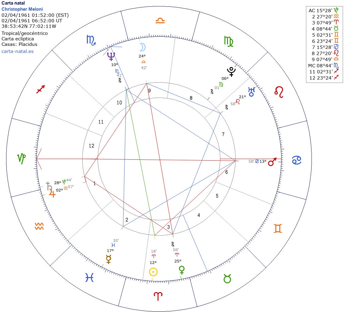 Esta es la carta natal de Christopher Meloni, actor estadounidense.