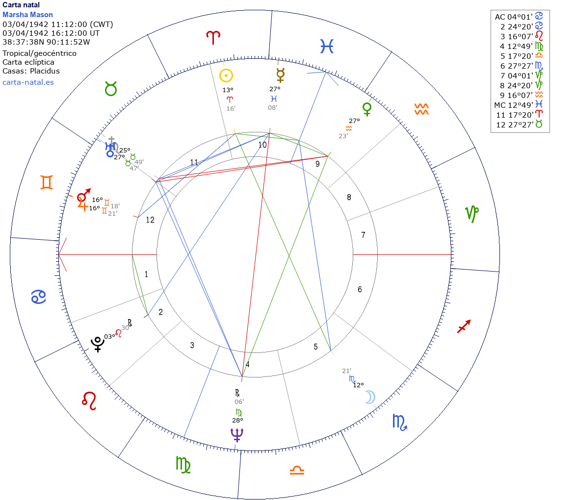 Esta es la carta natal de Marsha Mason, actriz estadounidense.