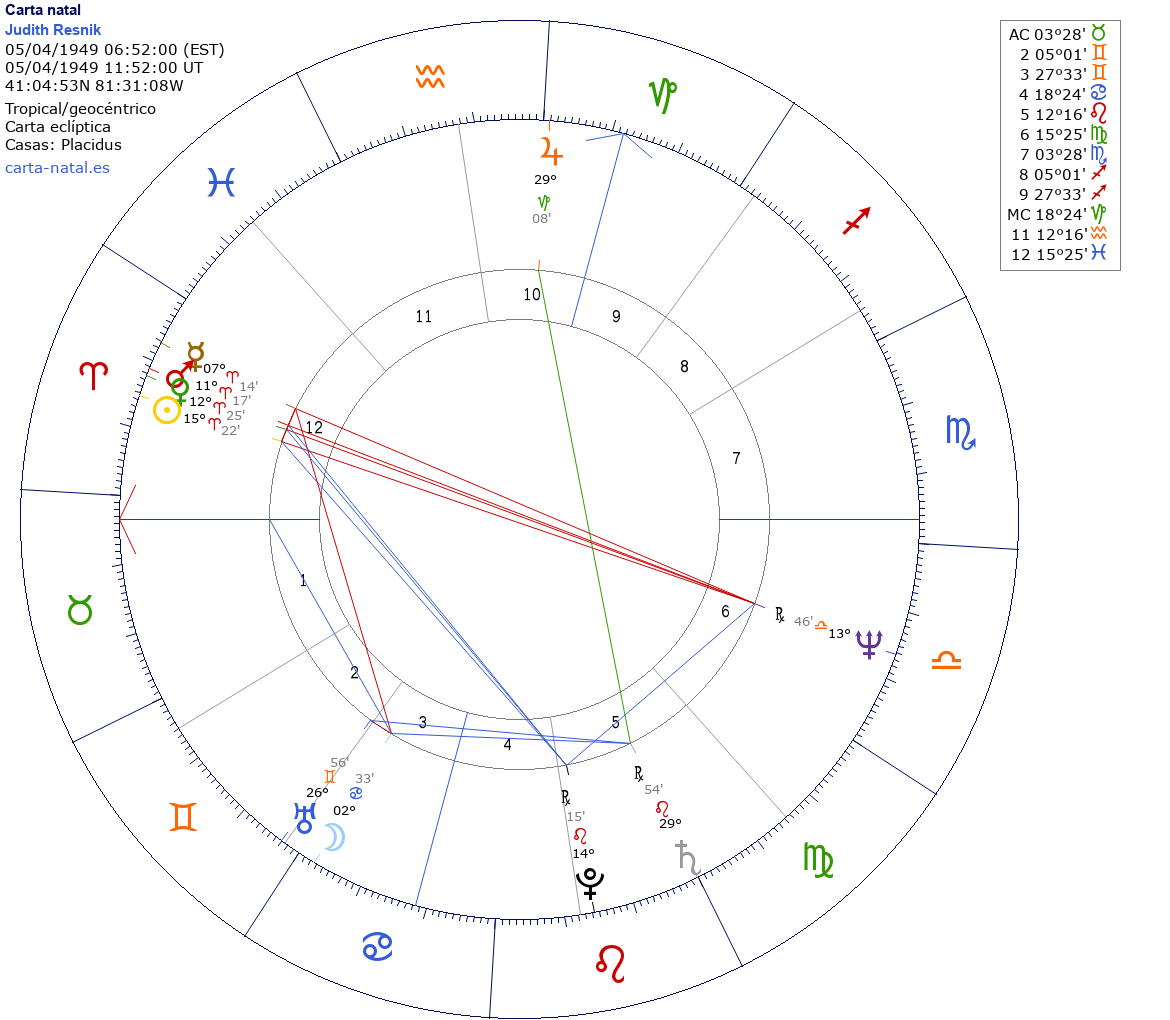 Esta es la carta natal de Judith Resnik, astronauta estadounidense.