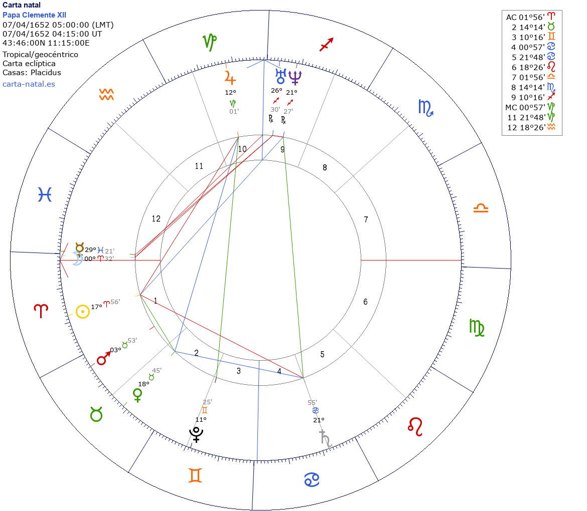 Esta es la carta natal de Clemente XII, Papa de la Iglesia Católica.