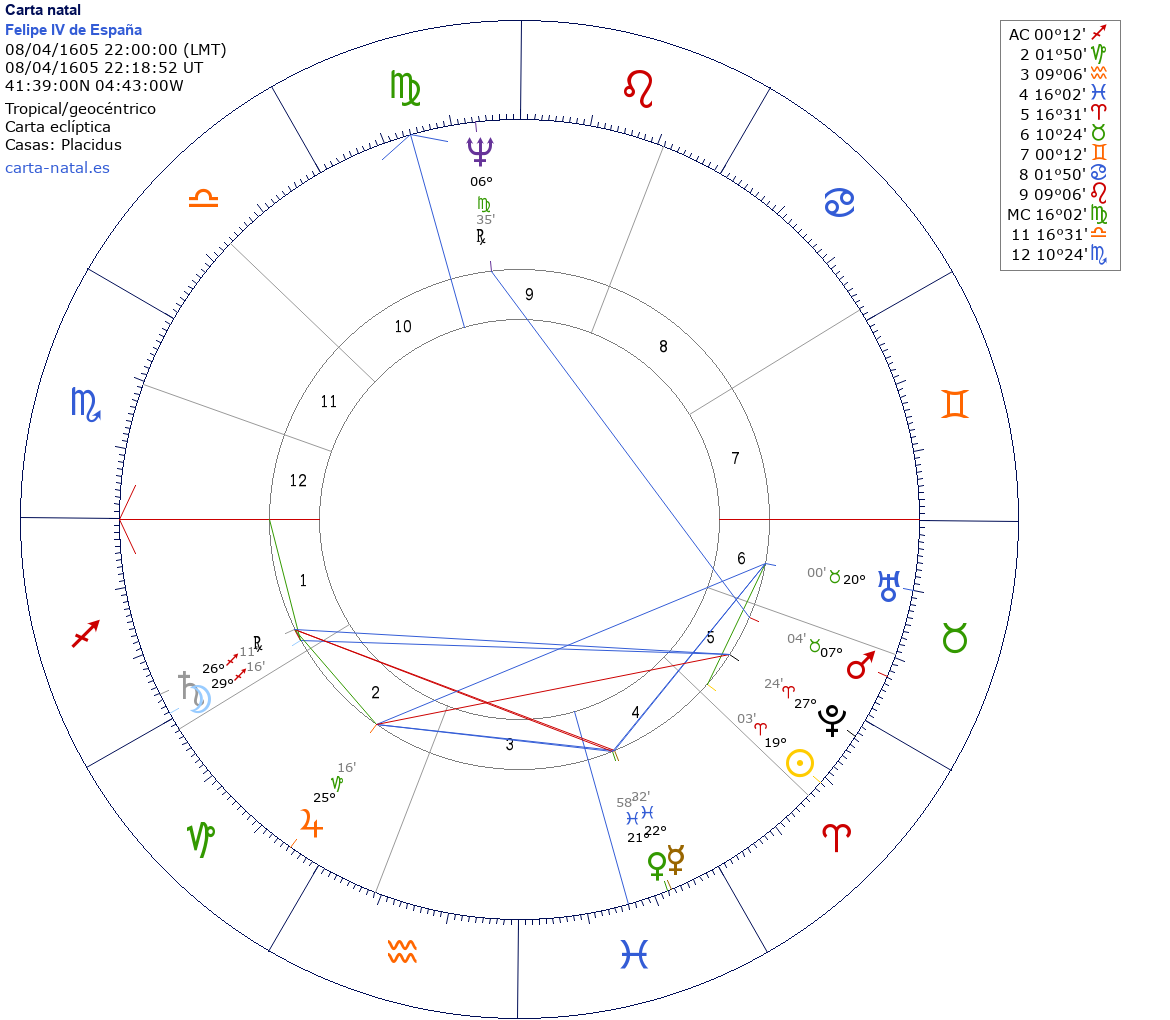 Esta es la carta natal de Felipe IV de España y III de Portugal.