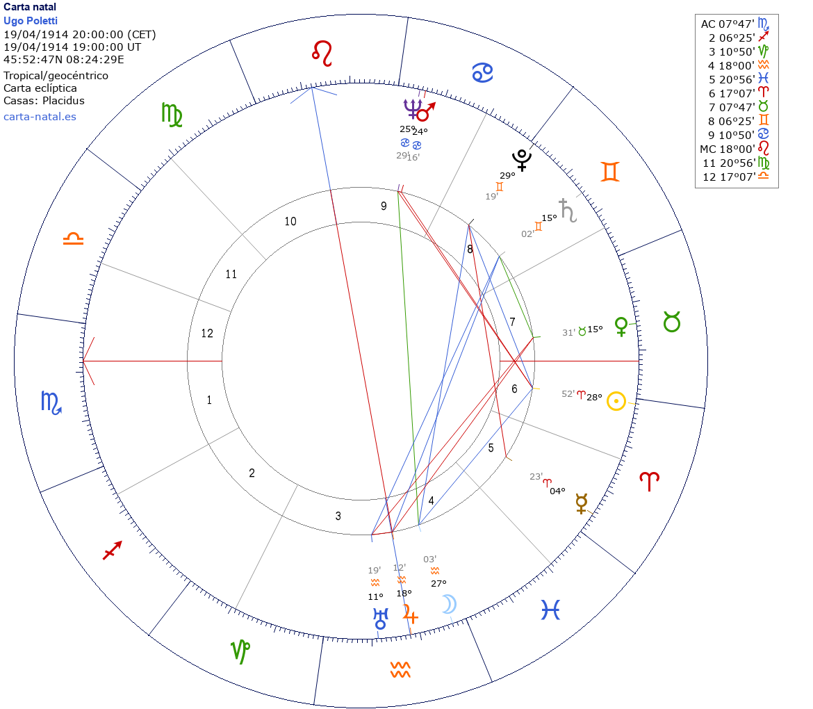 Esta es la carta natal de Ugo Poletti, cardenal italiano.